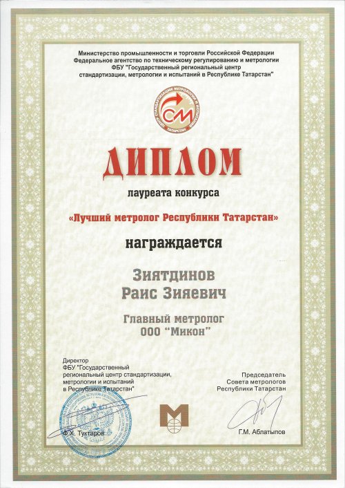 Главный метролог ООО «МИКОН» признан лучшим метрологом Республики Татарстан!